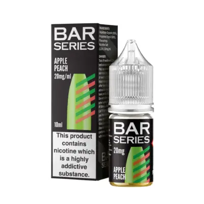 Apple Peach Bar Series Salt. Your favourite disposable flavour is now available as a 10ml nicotine salt. Enjoy the classic flavour in a new way without having the purchase disposable after disposable!