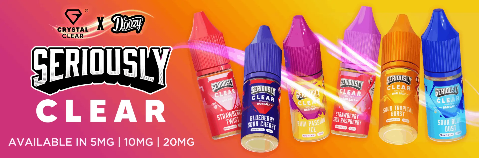 Discover the refined, refreshing character of the Seriously Clear range, crafted for vapers who prefer intense flavour without any heavy aftertaste. This collection highlights bright, lively notes delivered with a smooth, consistent draw that suits all-day vaping. Designed as a crystal-clear vape juice line, every blend offers a crisp flavour burst and a clean finish, ideal for those seeking premium 10ml vape juice options.