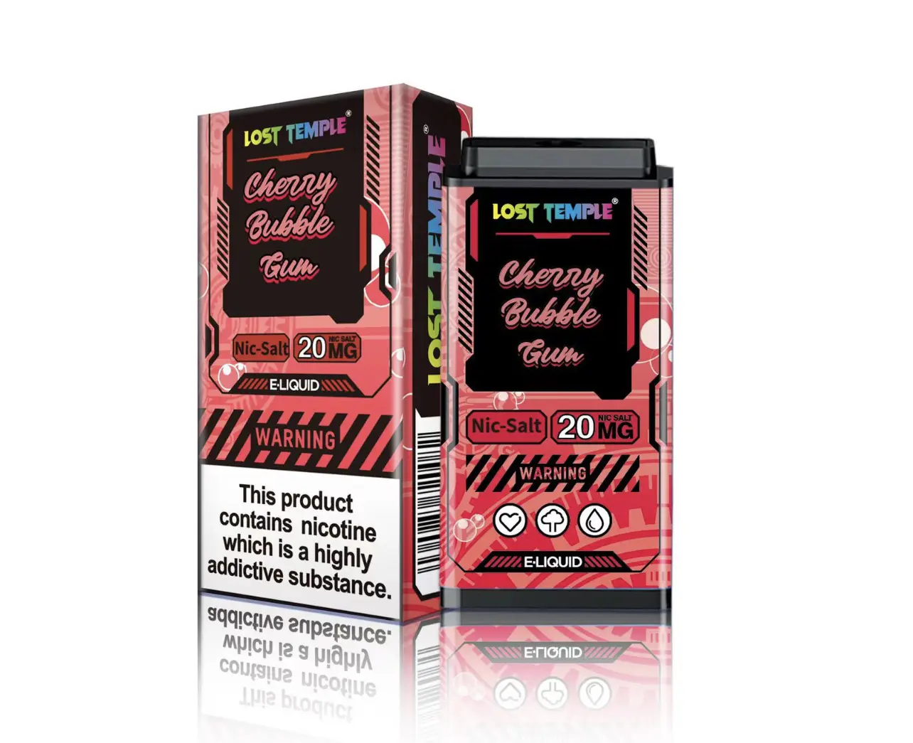 Cherry Bubble Gum by Lost Temple – Get your favourite Lost Temple e-liquid add it to the Lost Temple device and puff away. The refreshing taste of Cherry Bubble Gum by Lost Temple!