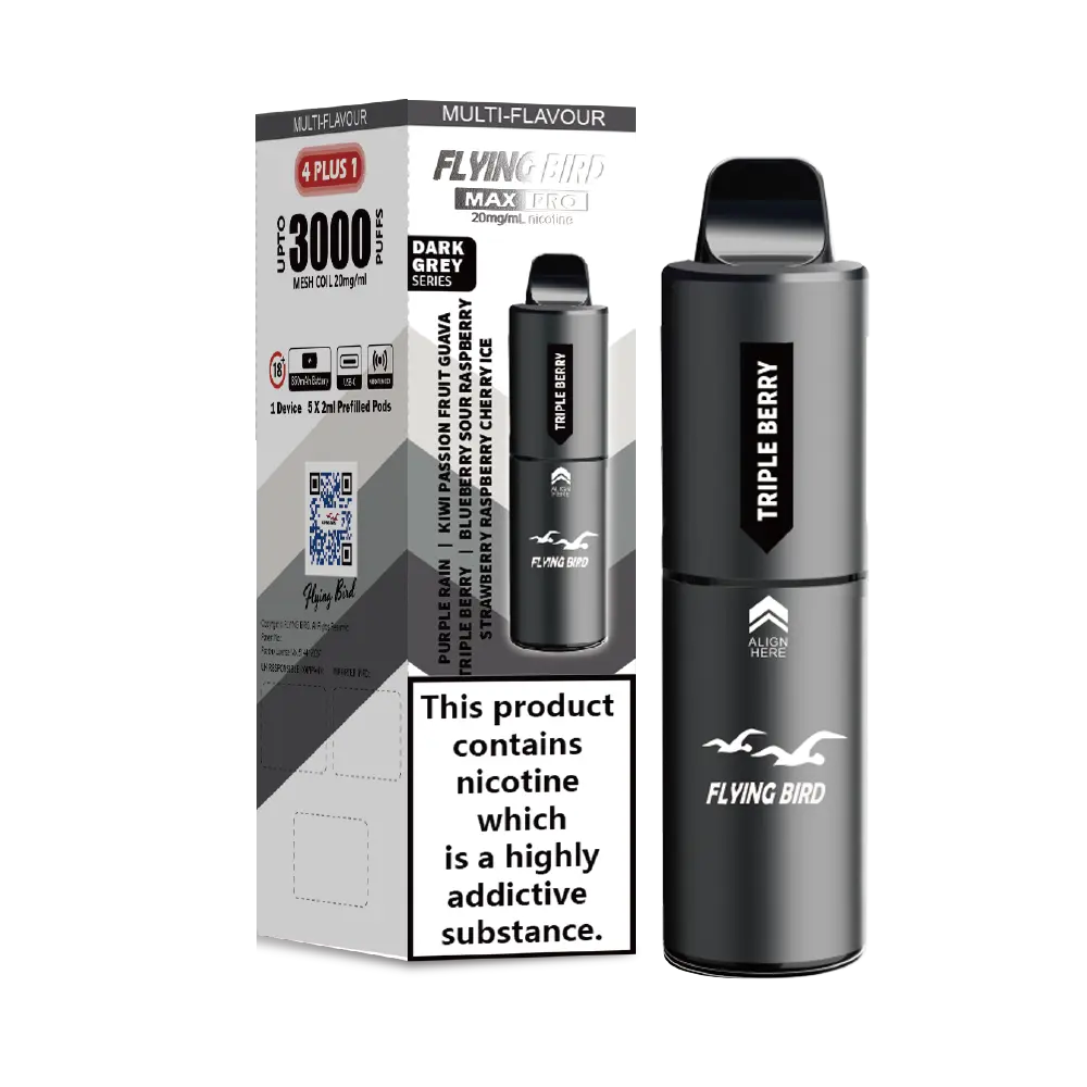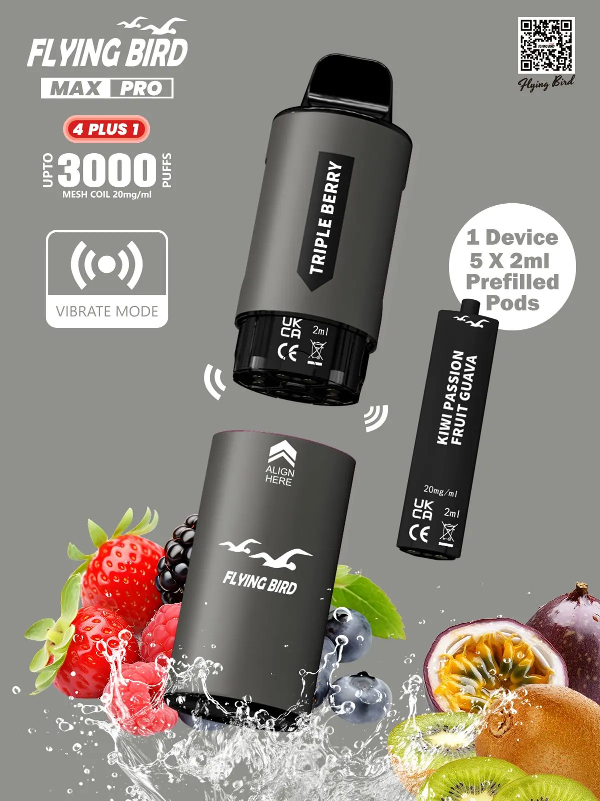 In summary, the Flying Bird Max Pro offers up to 600 puffs per pod and a total of 3000 puffs per device, combining convenience, durability, and superior vaping experience in one sleek, easy-to-use package.