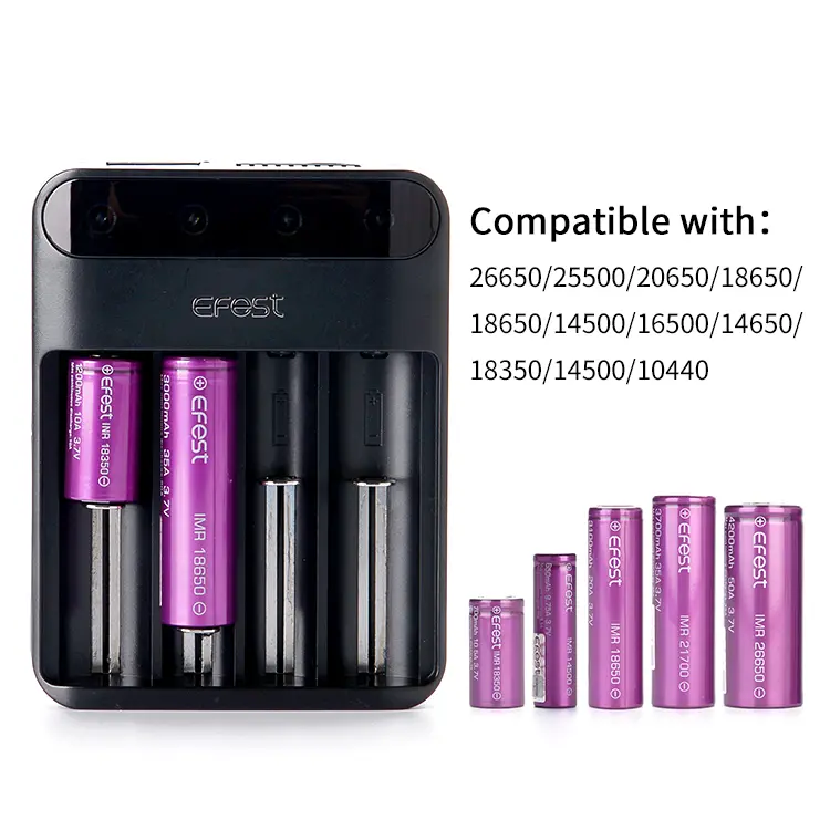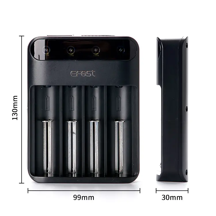 The Efest Lush Q4 battery charger is perfect for charging 18560 batteries that you may purchase with your vaping device. This charger is capable of charging all other types of batteries and not just the 18560. You can charge 18500, 18490, 25600 and many more, a detailed list can be found below.
