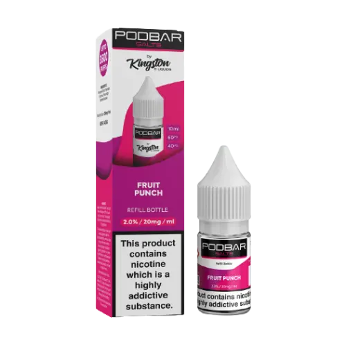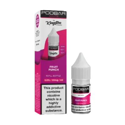 Fruit Punch Podbar salts are UK made by the famous Kingston E-liquid brand.