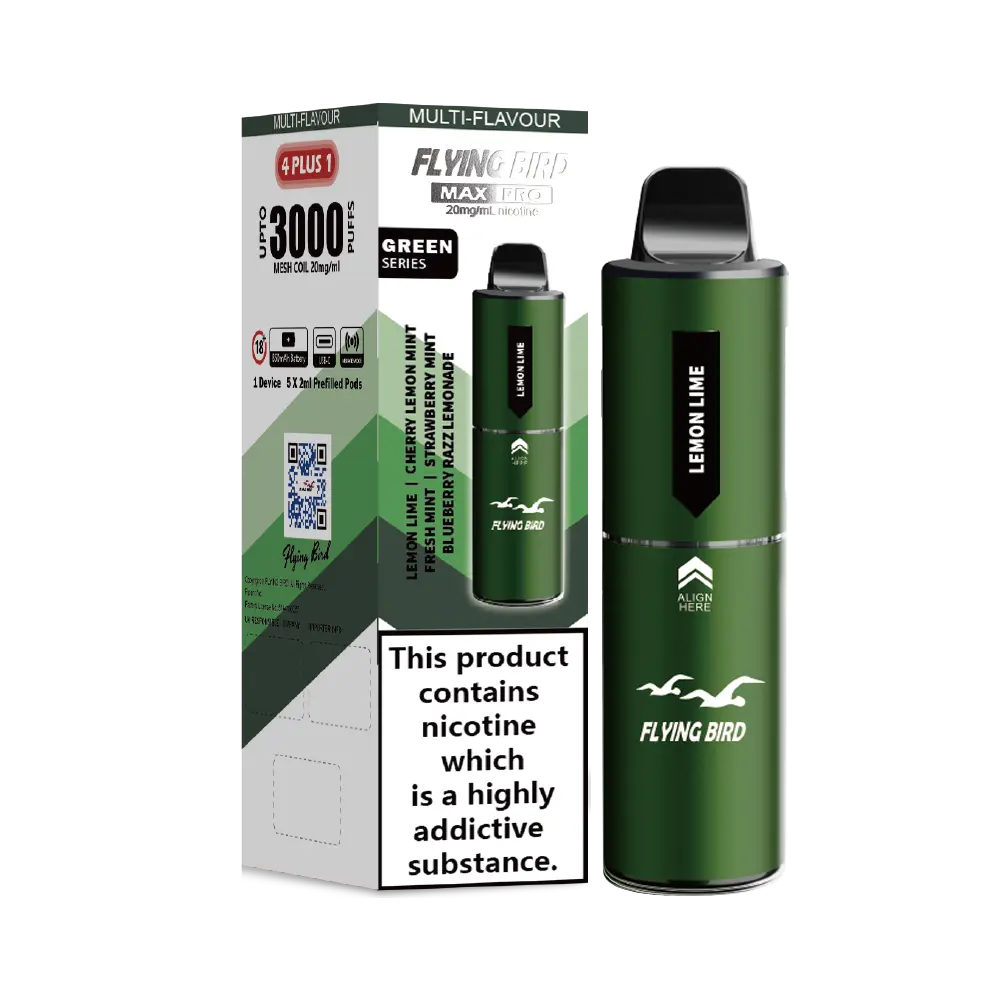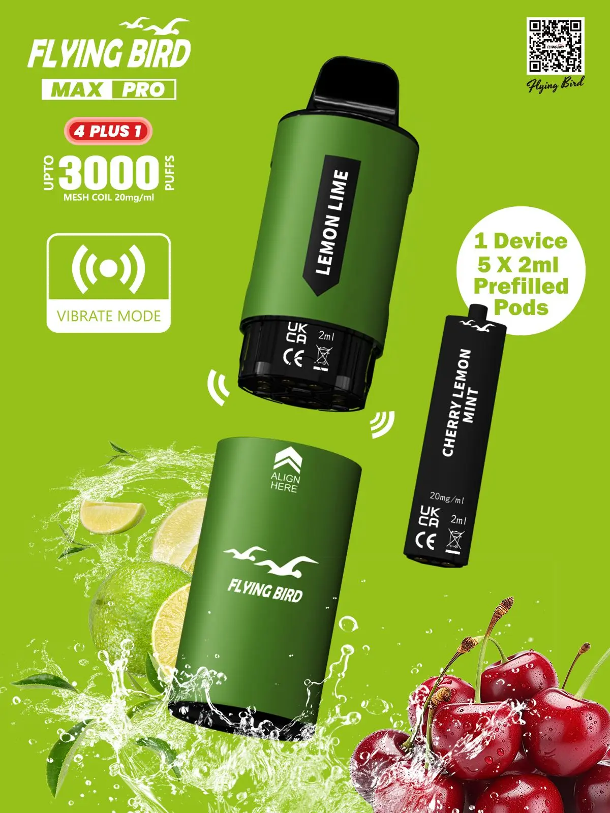 In summary, the Flying Bird Max Pro offers up to 600 puffs per pod and a total of 3000 puffs per device, combining convenience, durability, and superior vaping experience in one sleek, easy-to-use package.
