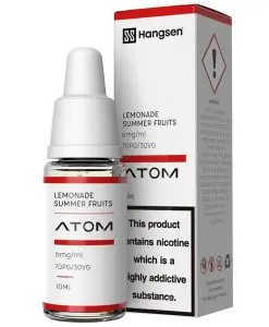 Lemonade Summer Fruits by Hangsen Atom 10ml. A mouth watering blend of fresh lemonade with it’s sharp and tangy citrus flavour that’s perfectly balanced with the sweetness of some freshly picked summer fruits culminating in a fizzy fruity flavour that’s amazing and bursting in flavour with a summer vibe. Hangsen Atom is a 70PG and 30VG mix.