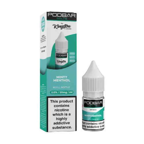 Minty Menthol Podbar salts are UK made by the famous Kingston E-liquid brand.