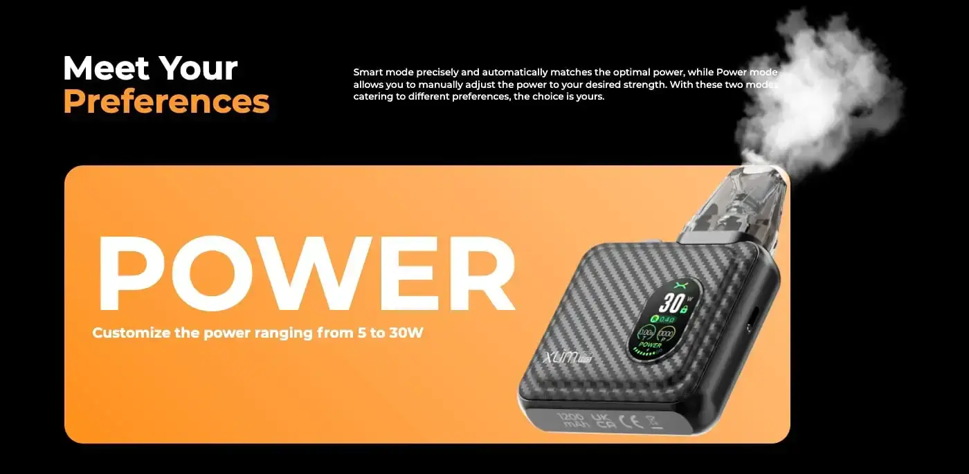 Manually adjust your wattage to your preferred strength — from 5W to 30W, depending on the XLIM pod installed. Ideal for vapers who like full control over their experience.