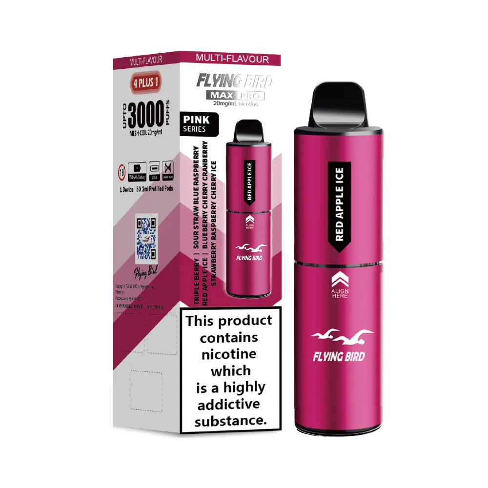 Each Flying Bird Max Pro comes pre-filled with 2% (20mg) Nicotine Salt e-juice, delivering a smooth throat hit and rich, mouth-watering flavours. The high-quality e-liquid ensures consistently enjoyable vaping, supported by the powerful built-in battery for reliable performance throughout its lifespan. The sleek appearance and user-friendly features make it a standout in the disposable vape market.