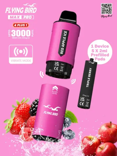 In summary, the Flying Bird Max Pro offers up to 600 puffs per pod and a total of 3000 puffs per device, combining convenience, durability, and superior vaping experience in one sleek, easy-to-use package.