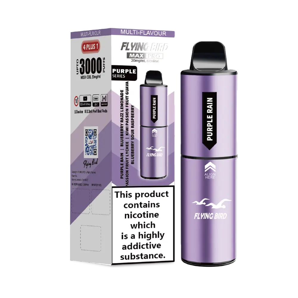In summary, the Flying Bird Max Pro offers up to 600 puffs per pod and a total of 3000 puffs per device, combining convenience, durability, and superior vaping experience in one sleek, easy-to-use package.