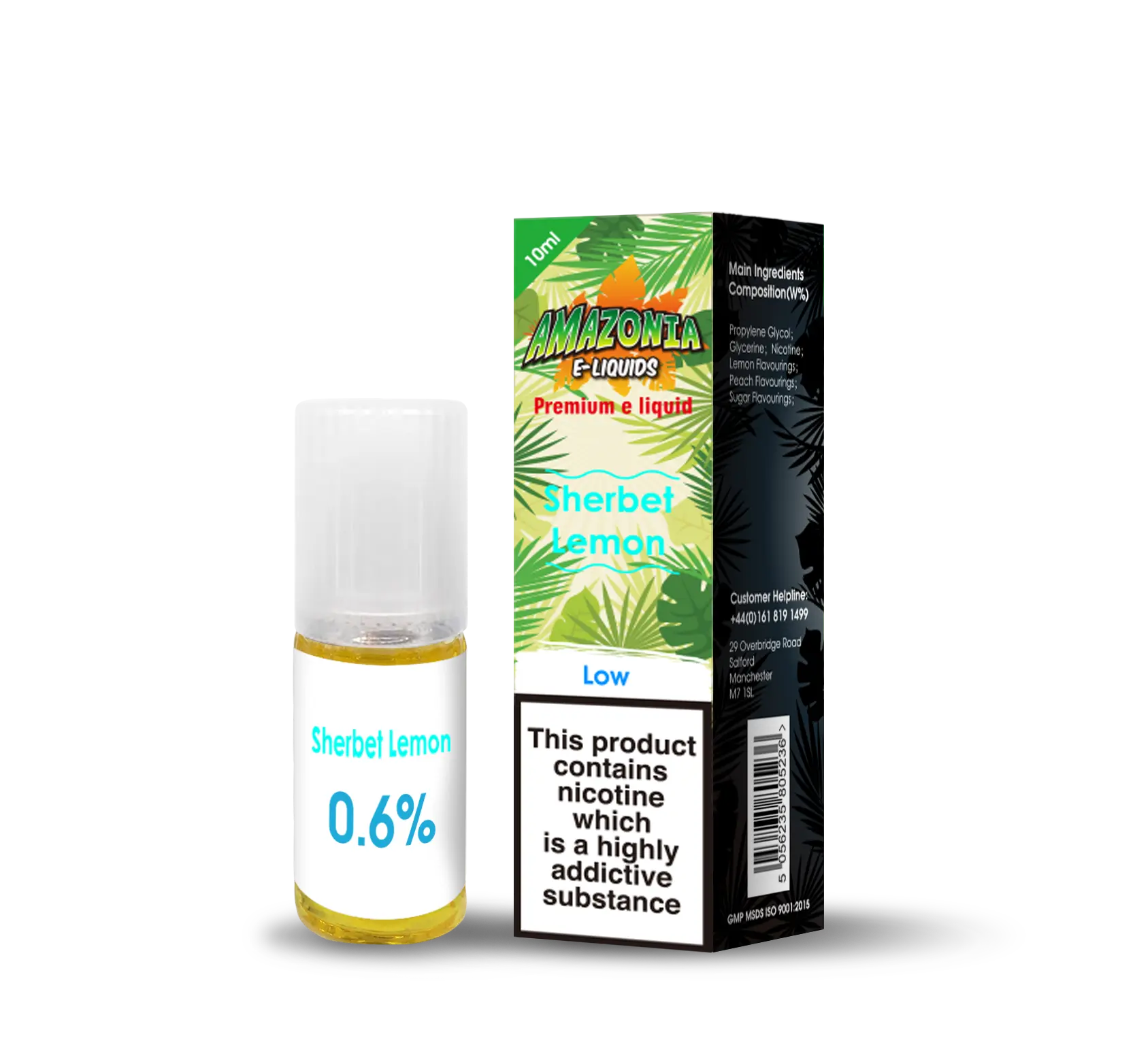 Sherbet Lemon by Amazonia 10ml is a 50% VG and 50% PG.
