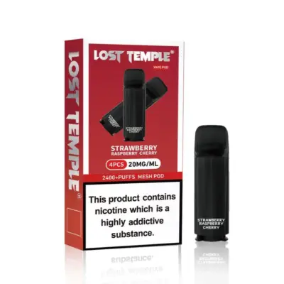 Indulge in the delightful flavours of the Strawberry Raspberry Cherry Vape Pen Pod Pack by Lost Temple. Each pack includes 4 pre-filled pods, offering a total of 2400 puffs. Elevate your vaping experience by pairing these pods with the Lost Temple Vape Pen Device. Enjoy your favourite Lost Temple pods and savour every puff.